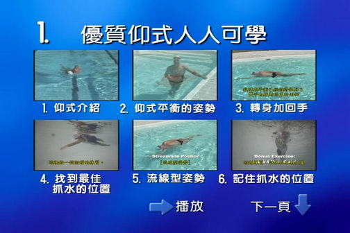 ;另外搭配有DVD教學光碟,觀看教練示範各種技巧,再進入泳池中實戰練習,學習